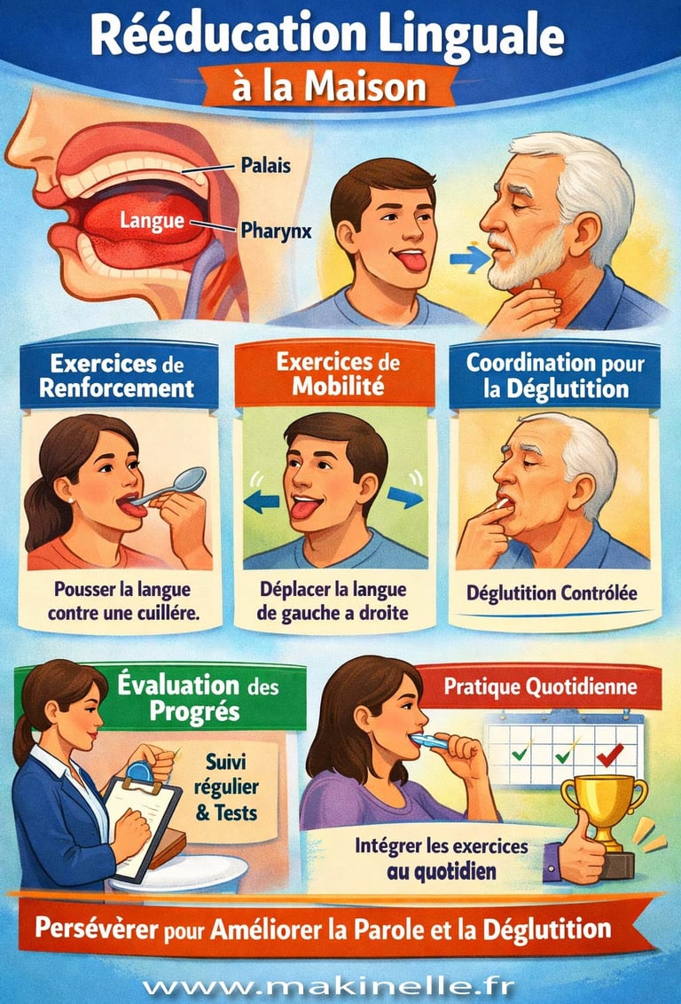 La mobilité de la langue est essentielle pour assurer des mouvements précis et fluides. Des exercices simples peuvent être pratiqués à domicile, tels que :